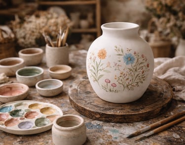 Walk in to paint a pre-made ceramic piece crafted by us — painted by you.
